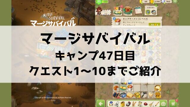 マージサバイバル 「マージサバイバル」攻略!47日目のクエスト1〜10までご紹介 2026年2月27日 risa_manage https://risa-game.com/wp-content/uploads/2023/04/Header-1.png リサのゲームブログ