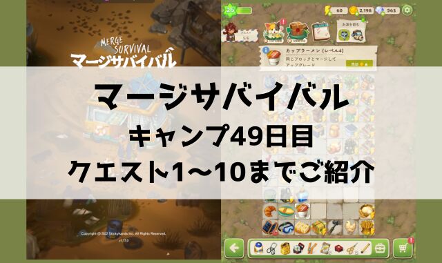 「マージサバイバル」キャンプ49日目のクエスト1〜10までご紹介しました。