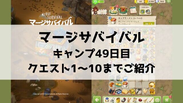 「マージサバイバル」キャンプ38日目 クエスト12〜22(最後)ご紹介