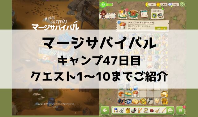 「マージサバイバル」キャンプ47日目のクエスト1〜10までご紹介しました。