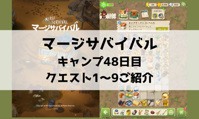 「マージサバイバル」キャンプ47日目のクエスト1〜9までご紹介しました。